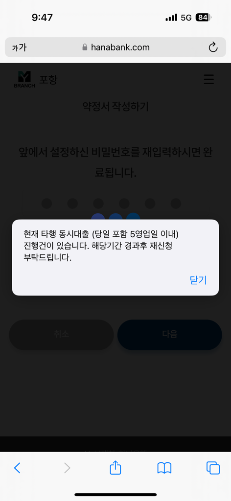 해당 대출을 동시에 진행하게 되는 경우에는 뒤에 진행하는 대출은 당장 대출진행이 불가능하기 때문에 일요일을 기준으로 한다면 20일 금요일에 대출 진행이 가능할 것으로 보이세요