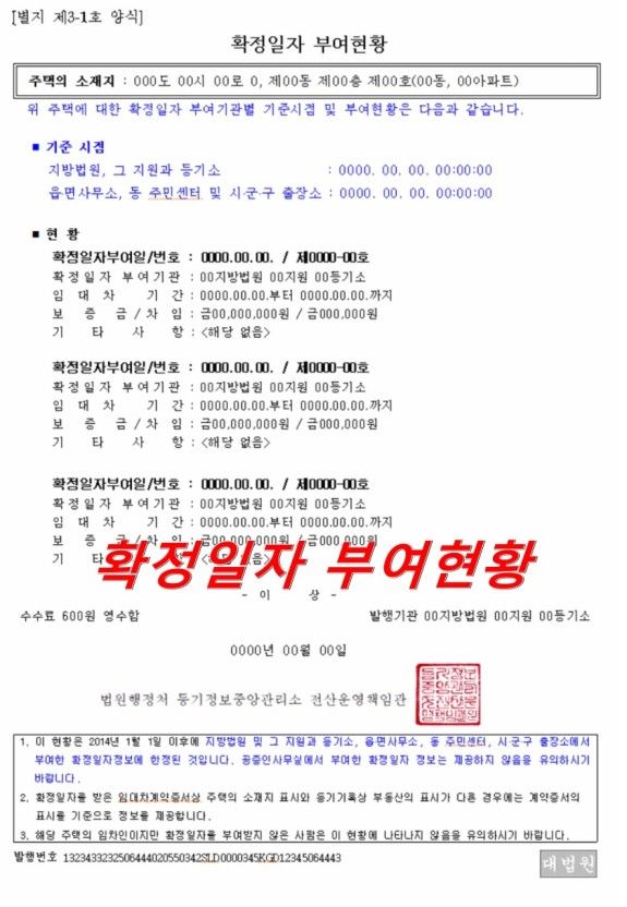 전세 보증금이 인상되고 재계약시 확정일자 부여 현황서에는 어떻게 기입이 되나요?