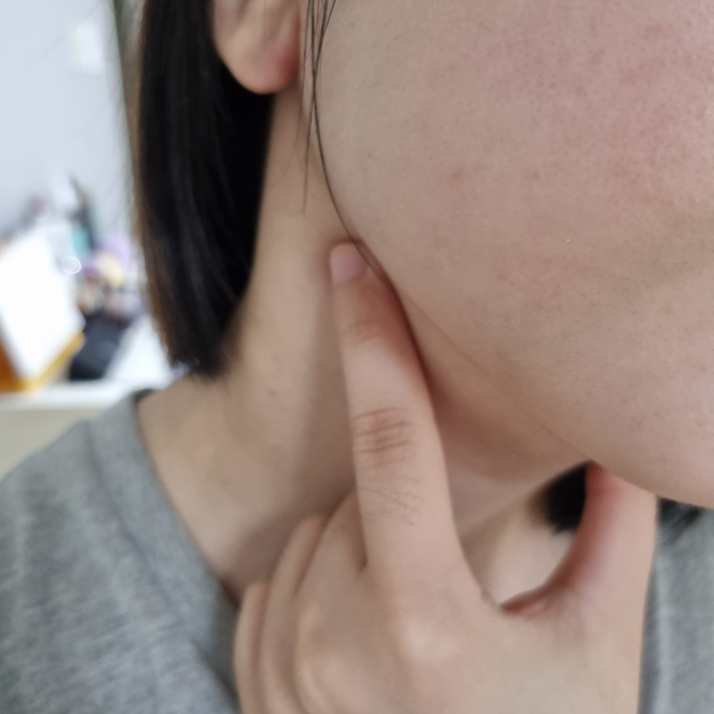 보통 해당 자리는 턱밑침샘염이나 림프절이 부었을 가능성이 높습니다. 피로나 스트레스로 주로 유발되는 경우가 많으며, 약을 드시면서 경과를 보시면 좋아지는 경우가 대부분입니다.