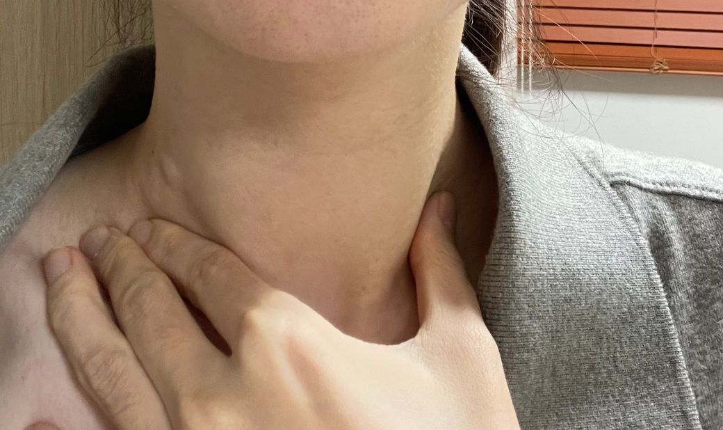 말씀하신 증상들로 구체적인 원인을 파악하기에 무리가 있지만 근골격계의 문제가 아니라면 목 안쪽의 문제를 의심해보아야 하겠습니다. 이비인후과에서 진료 및 정밀 검사를 받아보시길 권고드립니다.