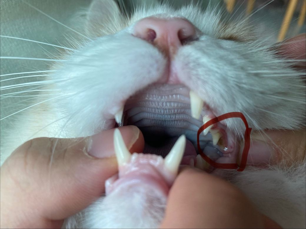 치석입니다. 고양이는 소량의치석도 심각한 수준의 치주염을 의미하기도 하니 동물병원에 데려가서 치과 진료를받으시기 바랍니다.