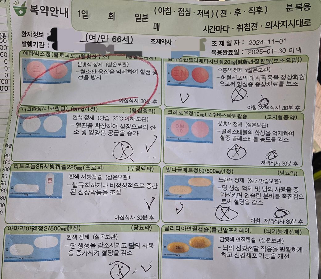 고지혈증약. 당뇨약. 심장부정맥약 등등