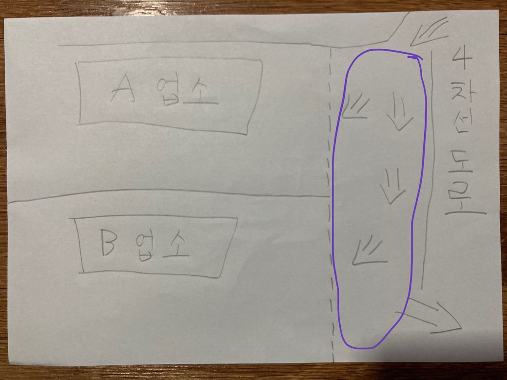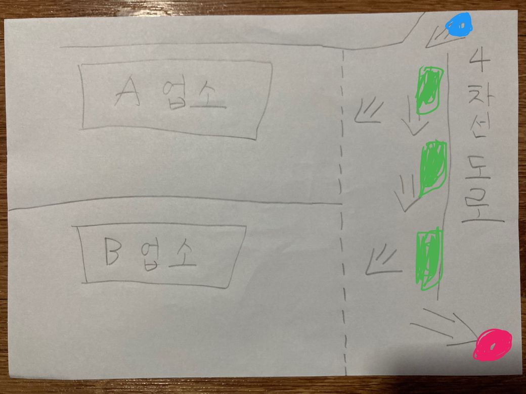 초록색 표시부분(옆 업소에서 주차하고 있는 상황)