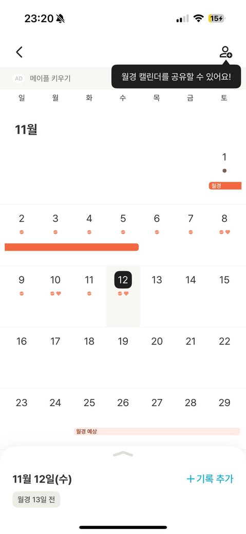 생리 2일 차인 11/2 일요일 부터 먹어서