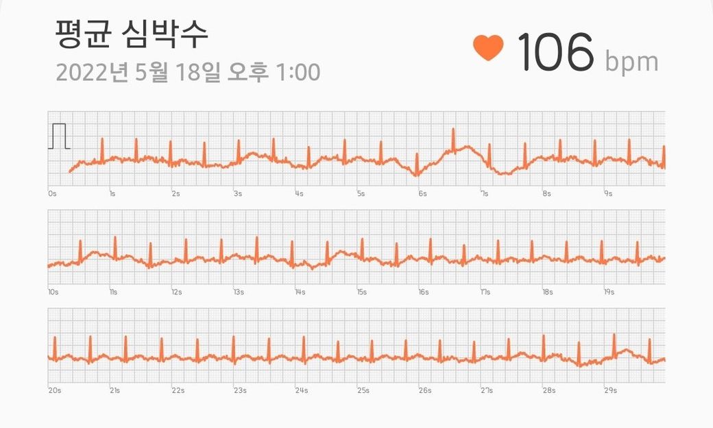 지식인에서도 답변을 드렸는데, 같은 분이신가봐요. 정상결과입니다. 맥박수는 정상인 100회보다는 약간 높은 정도이구요. 스마트 워치가 접촉이 잘 안되면 심방 세동이라고 너무 자주 떠요. 그냥 참고만 하시길..