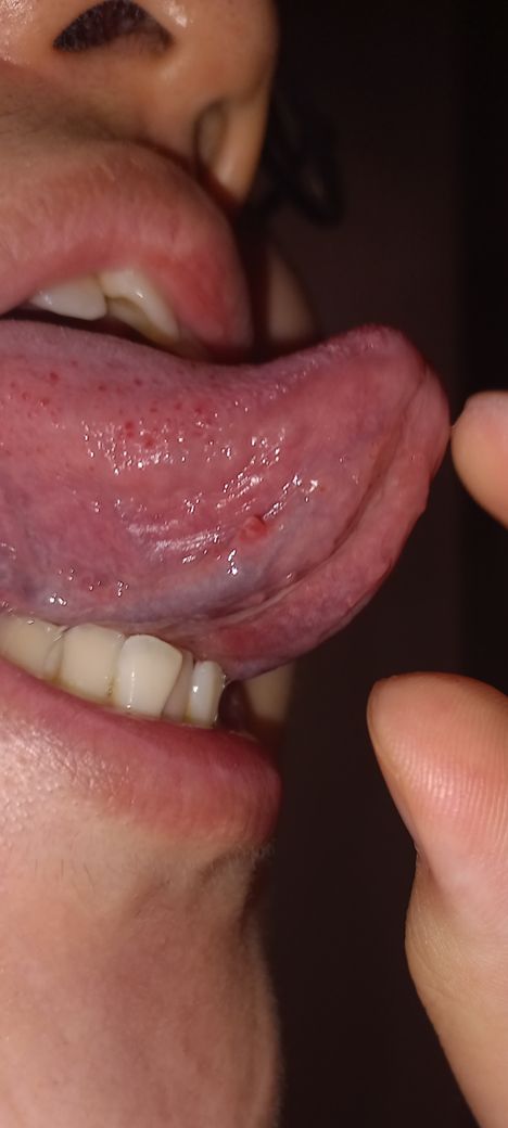 양치하다가 혀 밑에 늘어져있는 큰 돌기를 발견했어요. 원랜 접혀있는데 피면 저렇게 길게 늘어집니다.