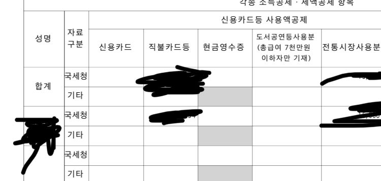 작년에 연말정산할때 회사 담당 세무사분께서 주신 근로소득원천징수영수증의 신용카드 등 사용액공제란에