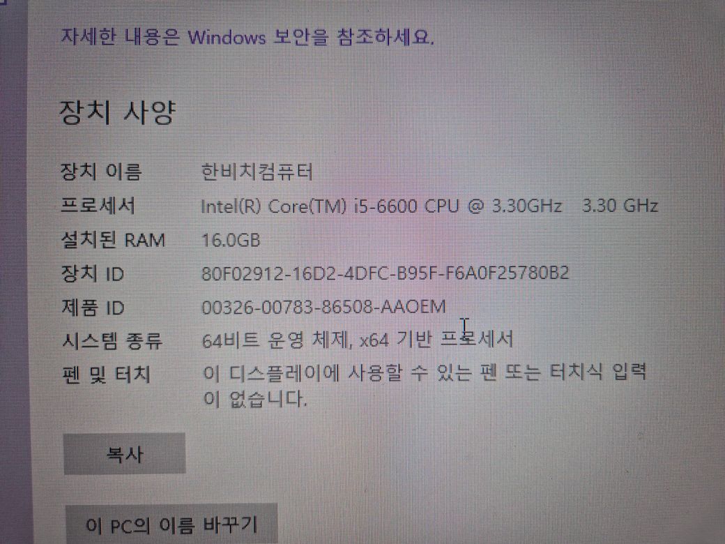 현재 사용하시는 컴퓨터는 i5-6600 CPU와 16GB RAM을 갖춘 시스템입니다. 피파온라인 같은 게임에서 모니터가 다운되거나 화면 연결이 자주 끊기는 현상은 내장 그래픽의 한계나 그래픽카드 문제일 가능성이 높습니다.