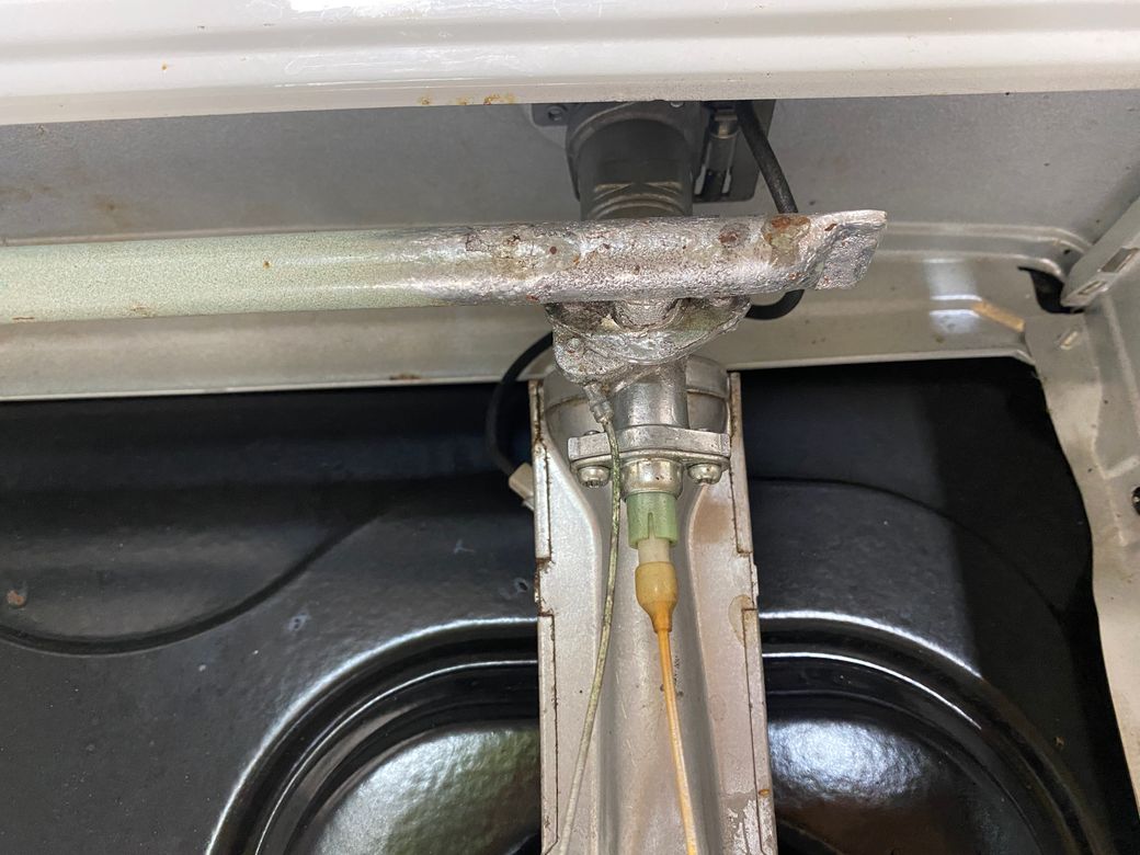 아랫면을 들춰보니 점화가 안 되는 쪽 가스관이 탄 건지 부식된 건지 모르겠는데 칠이 벗겨져있어요.