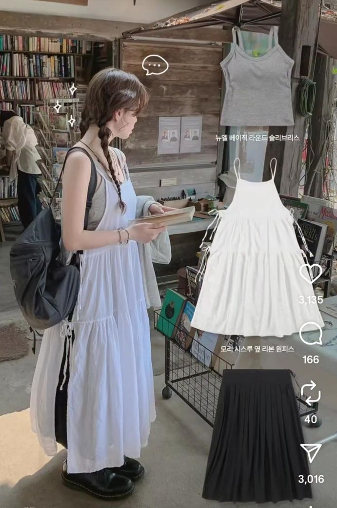 사진 속 코디는 화이트 원피스에 검정 스커트 레이어드로 톤 대비가 뚜렷한 내추럴 무드입니다. 여기에 검정 청자켓을 입으면 충분히 잘 어울립니다. 특히 겨울로 넘어가는 계절엔 짙은 색 아우터가 균형을 잡아줘서 차분하고 멋스럽습니다. 다만 자켓이 너무 두껍거나 워싱이 강하면 캐주얼 느낌이 강해질수 있으니 깔끔한 핏의 청자켓 또는 블랙 가디건으로 매치하면 좋습니다 .