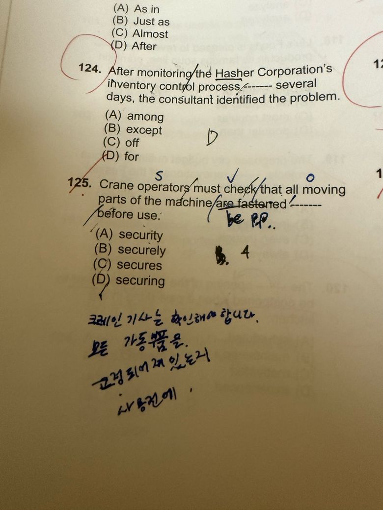 125번 문제 해석도 빠르게 되고 빈칸에 들어갈 알맞는 품사 찾는거라 그렇게 어렵진 않은데 헷갈려서요…