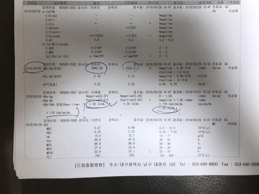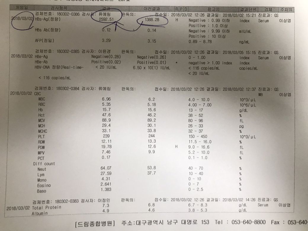 hbs-ag수치가 높아보이는데 (과거에는 더 높았고) 저것이 B형간염에 대해 좋아진다 안좋아진다의