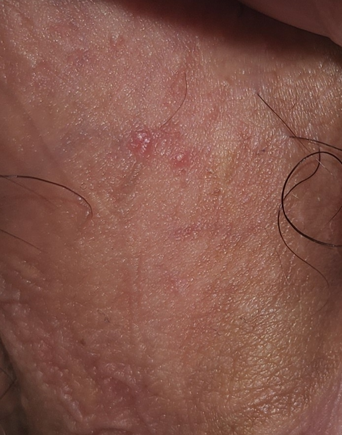 현재 헤르페스의 가능성은 낮아보이나 가려움증이나 통증이 동반되거나 수포가 터지면서 미란이 생기는 경우는 의심해 볼 수 있겠습니다.