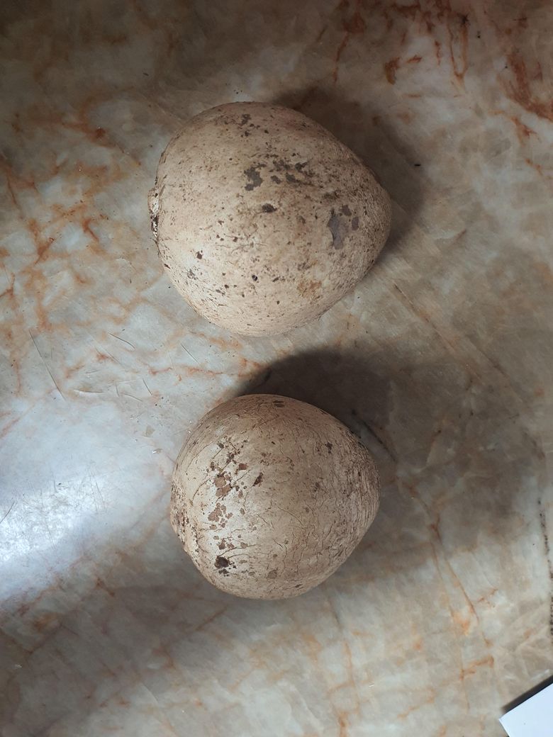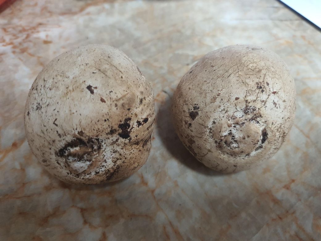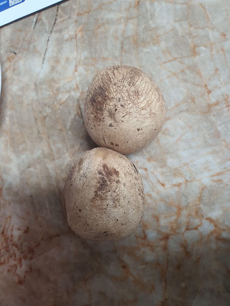 살아있는 소나무와 죽은 소나무 사이에서 발견된 버섯입니다. 꼭 감자처럼 생겼고 표면은 맨들맨들하고 윗부분에 주름이 있습니다. 만졌을 때 누르면 터질거 같은 풍선같은 느낌입니다(내부는 딱딱한거 같아요) 윗부분(주름 부분)과 뿌리부분은 딱딱합니다. 뭔가 옆부분에 공기층이 있는 느낌? 색은 감자색이구요. 공처럼 생겼습니다. 무슨 버섯인가요?