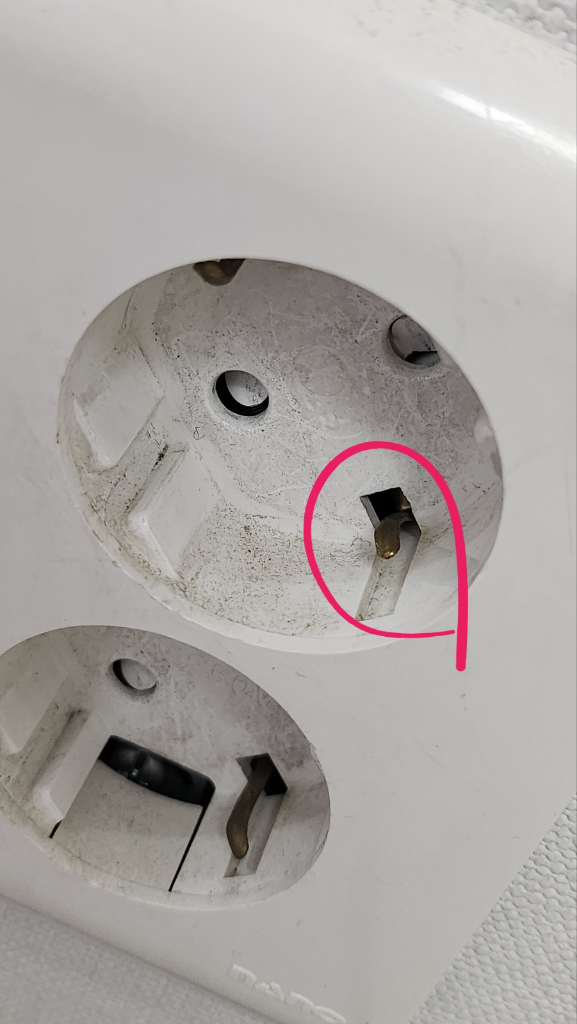콘센트 이 부분이 꺾여서 잘 안 들어가지는데 그냥 손으로 빼서 펴도 안 위험한가요?
