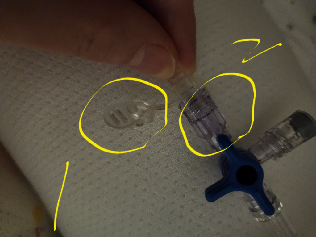 대학병원입원중 수액줄 바닥에 끌린부분 그대로 연결됬어요..