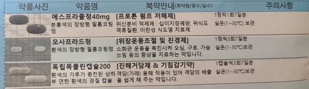 처방받은 약의 약봉지를 사진촬영해 올렸습니다.