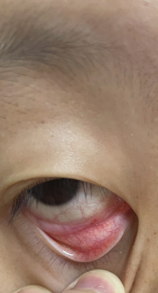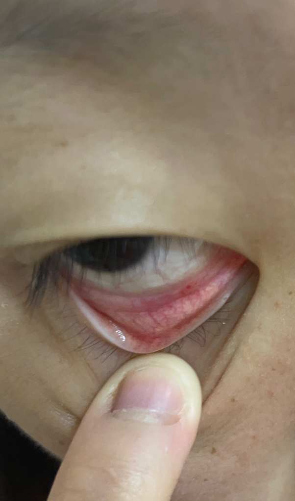 눈에 먼지 들어간줄 알고 비벼는데... 간지럽고 비비면 따까워요 눈에 안쪽에 빨간점이 있어요 이렇게 있어요 안과를 가야 하나요?