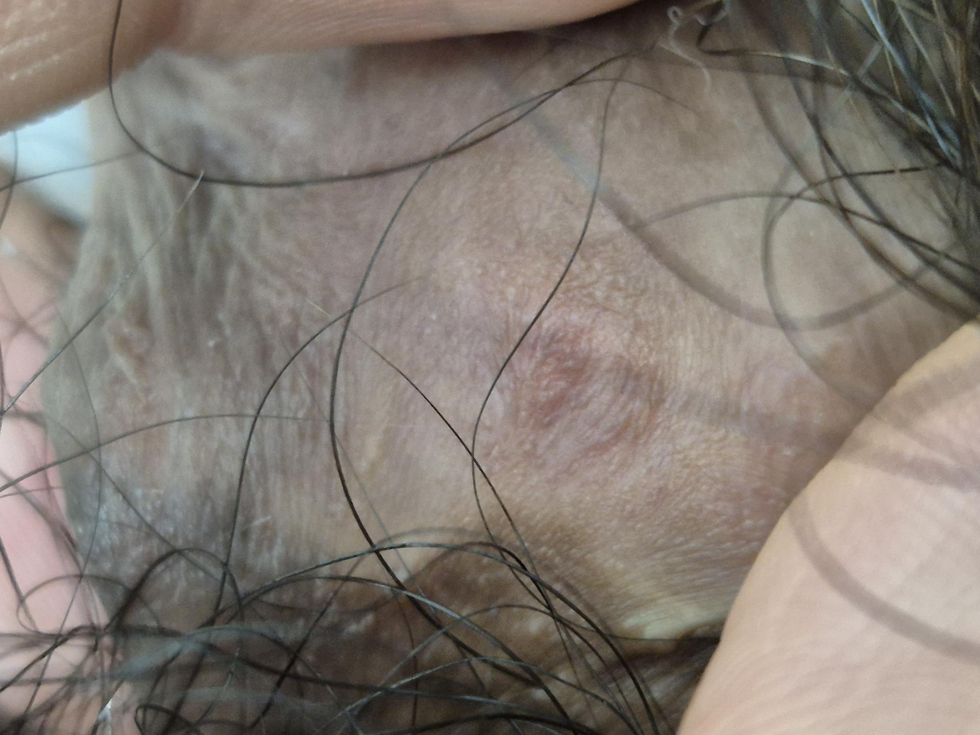 제시된 부위는 뚜렷한 궤양이나 물집보다는 과자극 후 민감해진 피부 형태로 보입니다. 특히 “팬티에 닿을 때 아픔”은 표면 미세 손상에 전형적입니다