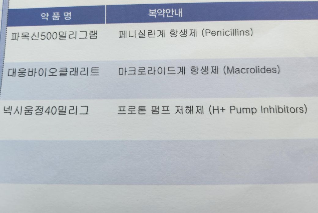 위의 약들을 금일 헬리코박터균 검사 후 처방 받았습니다