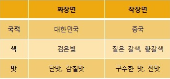 중국의 작장면은 된장 볶은것 같은 갈색의 짠맛을 면과 비벼 먹는 것이고,
