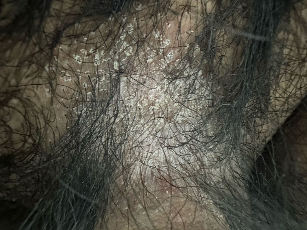 약을 도포한 상태에서 사진을 찍으신 것으로 생각되며 이로 인해 병변이 잘 확인되지 않습니다.