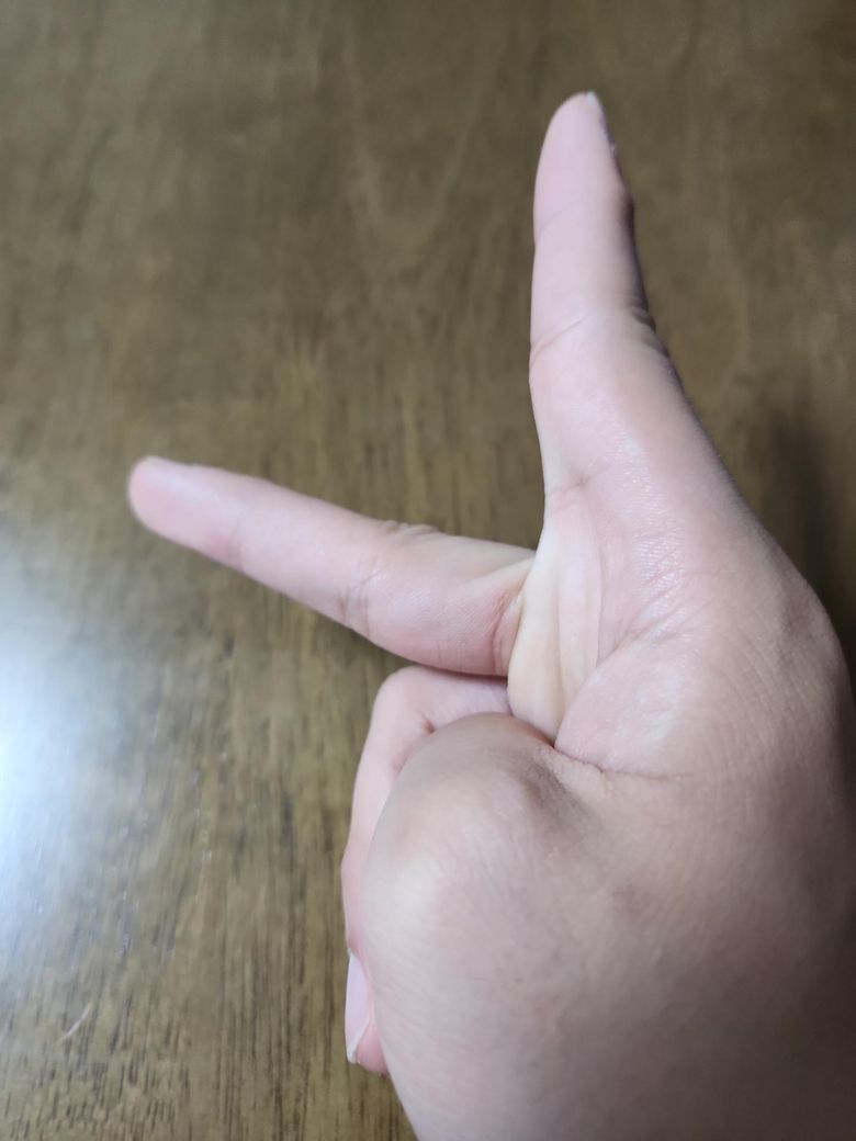손가락 브이모양이 엄지를 쓰면 되는데 안쓰면 안돼요