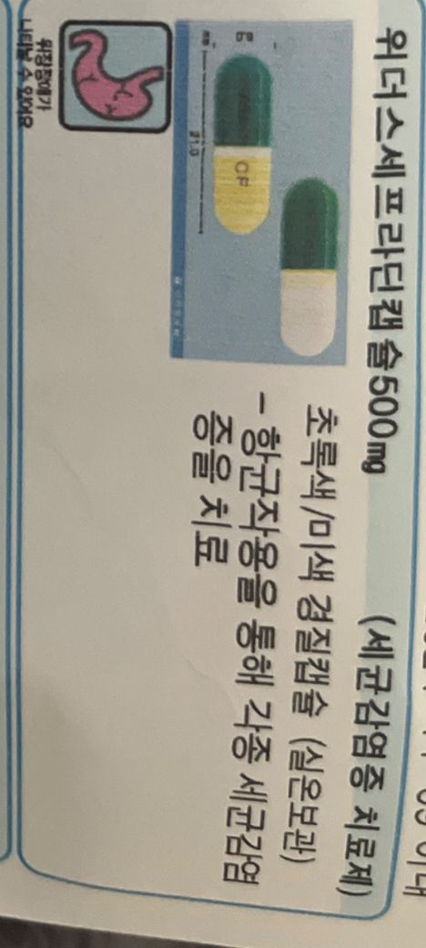 세파계 항생제로서 일정시간 간격으로 처방대로 약을 끝까지 복용하셔야하며 음주시엔 부작용뿐만아니라 염증이 악화될 수 있으므로 금주하시길 바랍니다.
