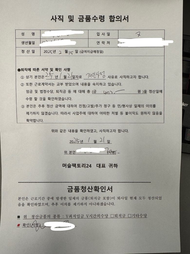 앞으로는 사측이 서명을 요구하는 서면의 경우 노무사 상담 이후 서명하시기를 추천드립니다.