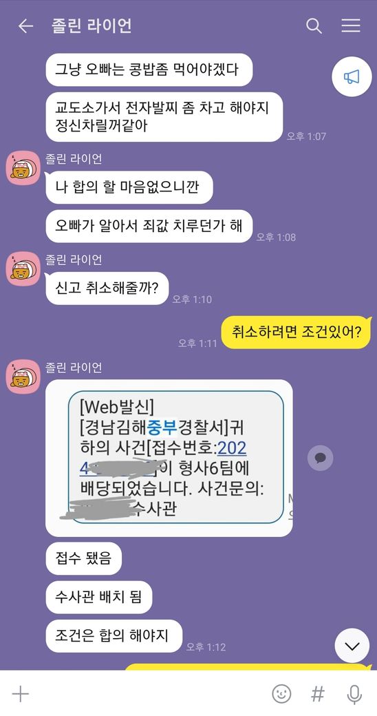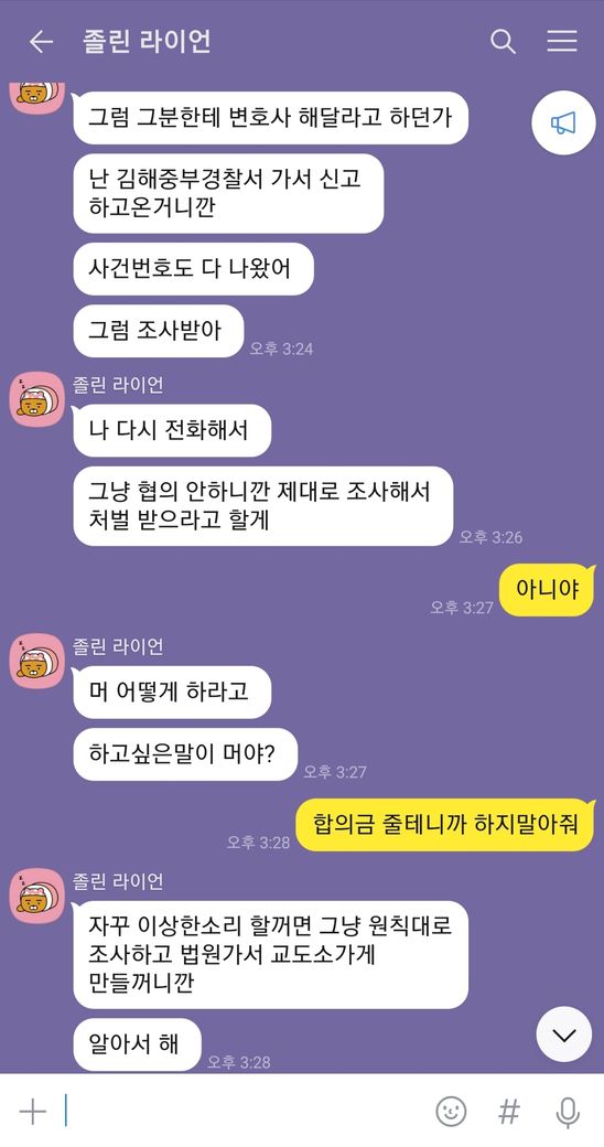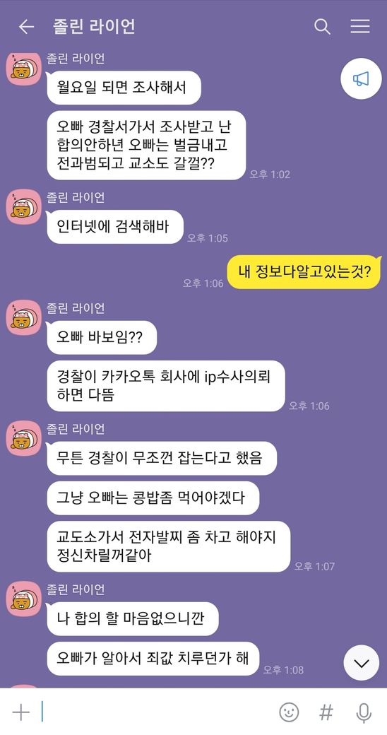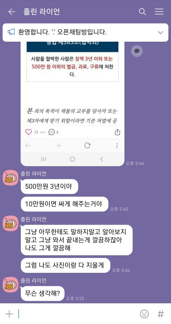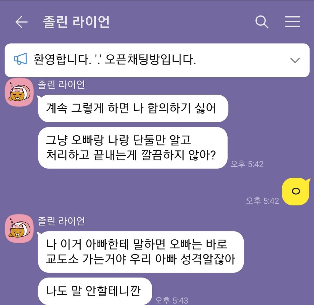 제가 1대1 오픈채팅방 하다가 고소먹었는데요.