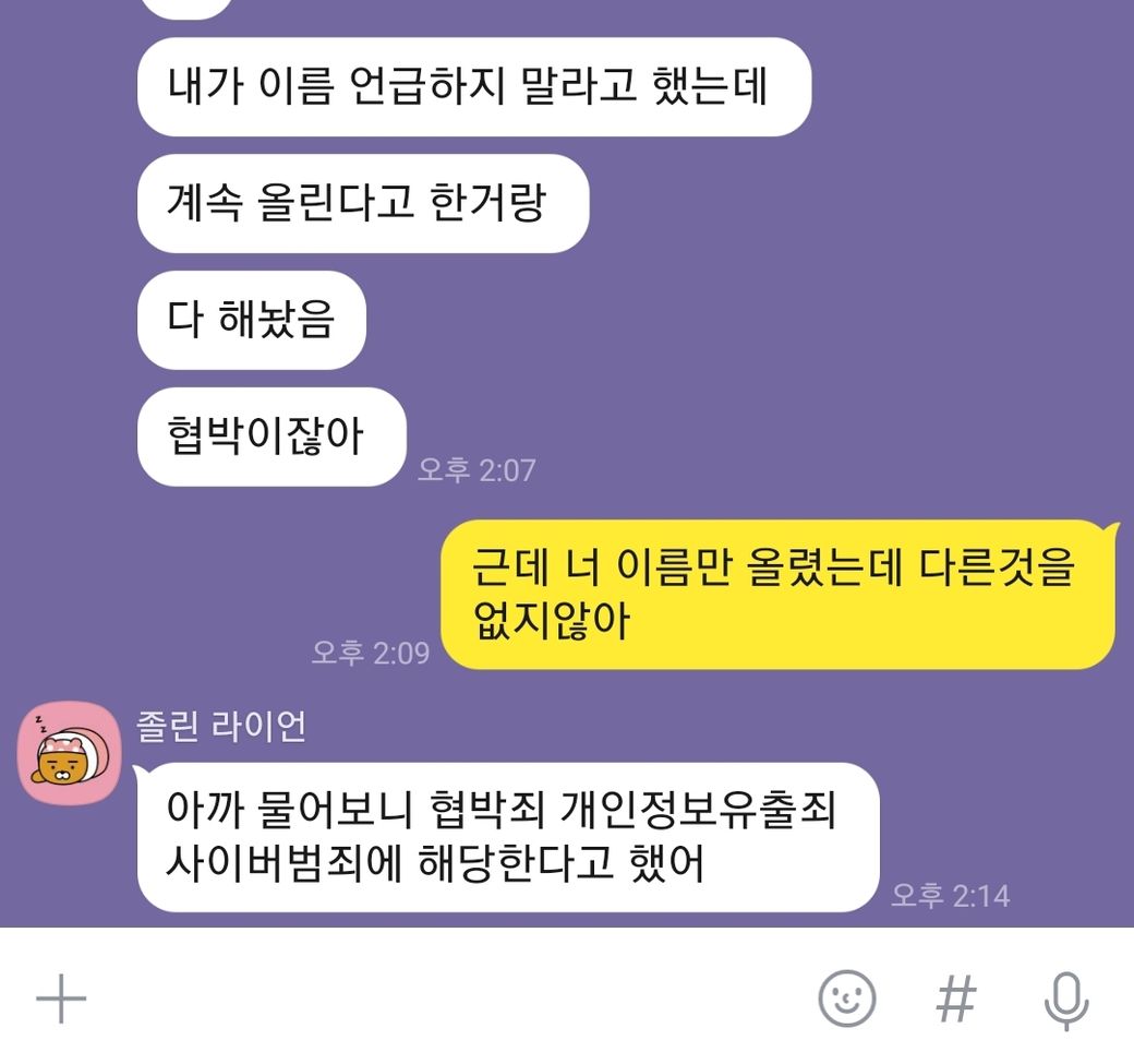 1. 제가 " 그냥 너이름을 오픈채팅방 놔둘게 " 말만했습니다.