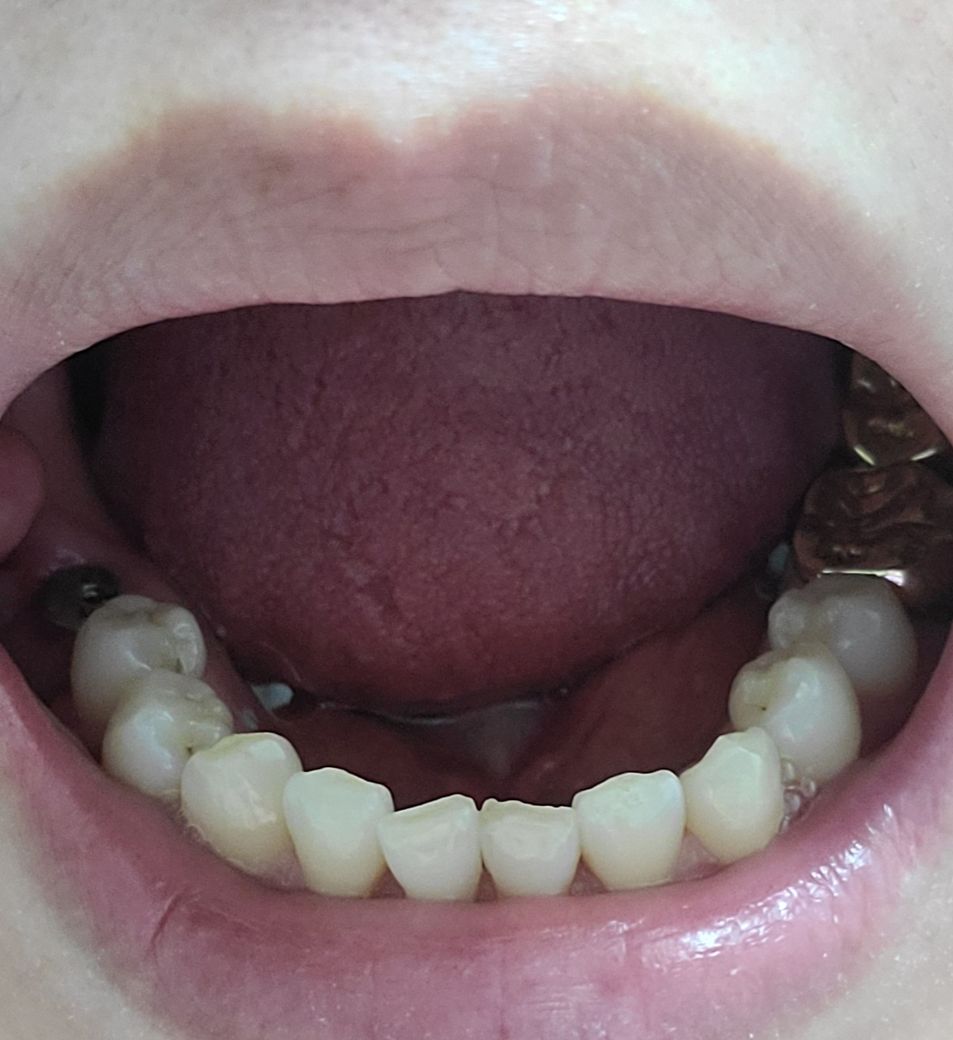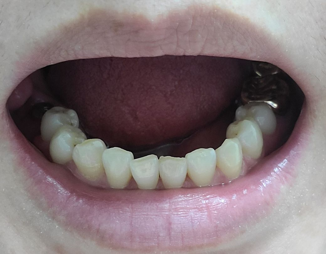임플란트 한 치아 앞 치아가 안쪽으로 들어가고 높아진 경우 느낌상 불편감을 느끼는 것일수 있습니다.