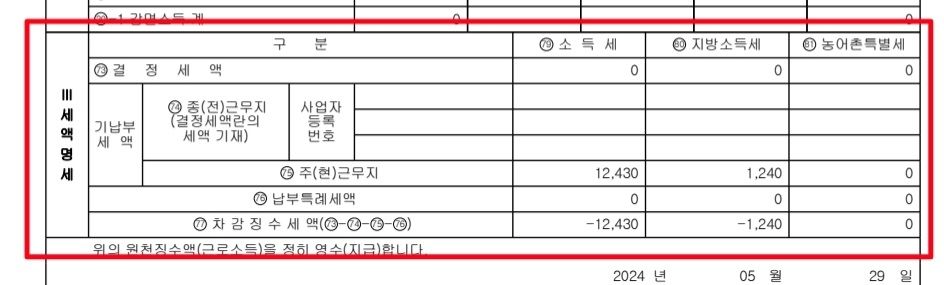 이 경우 원천징수영수증 상 결정세액이 0원이고 사진처럼 -12,430원, -141,880원에 해당하는 차감징수세액을 종소세 환급급금과 별도로 회사로 부터 환급받을수있나요?