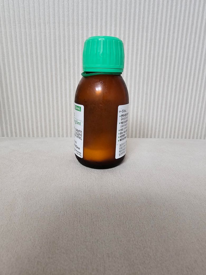 적어주신대로 종이에 표기되어있는 50 ml 화살표 지점에 맞춰서 물을 넣어주시면 됩니다. 오래 복용해야하는 경우에 보관 편의성을 위해 이렇게 건조시럽으로 주는 경우도 있습니다.