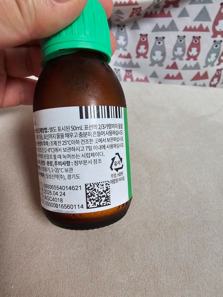 유효기간이 짧아 위처럼 조제를 해서 주신 것으로 조제된 액상을 먼저 드시고 이 후 새 병에 물을 타서 조제해 드시면 됩니다.