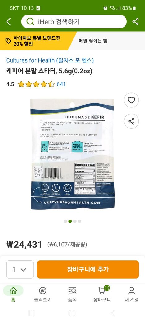 아이허브에 케피어 분말 스타터를 팔던데요. 저 사진 제품 여름에 주문해도 될가요?