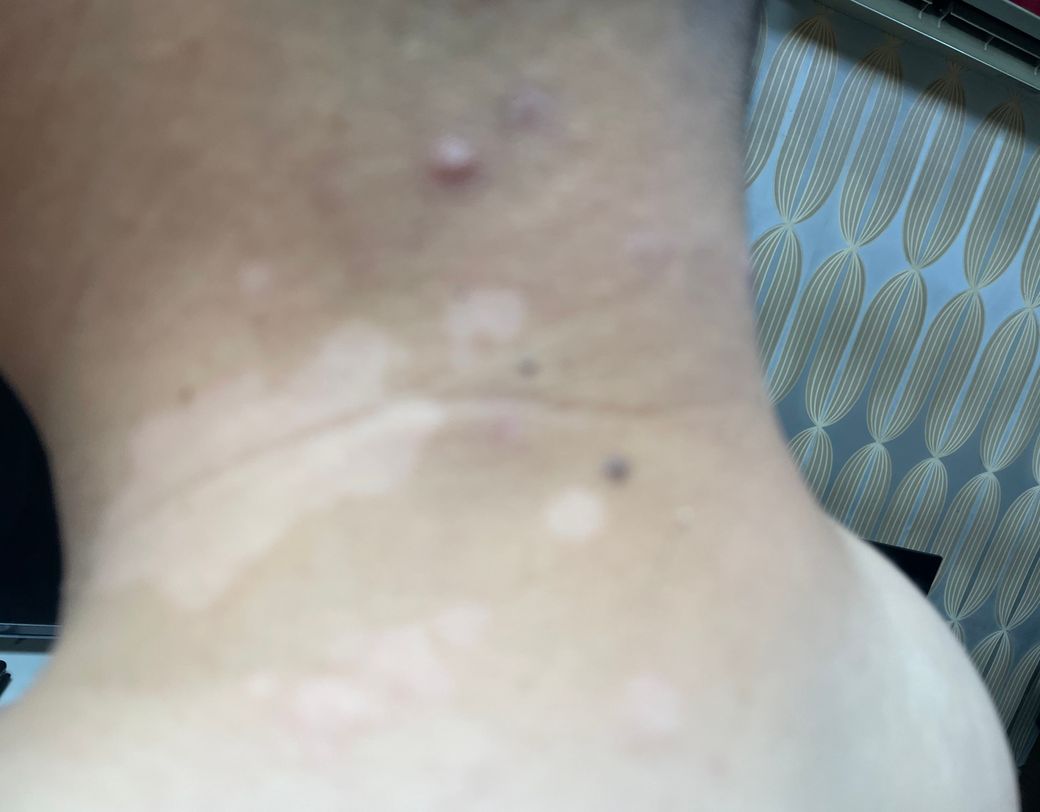 목뒤쪽 피부에 하얀색으로 이런게 생겼습니다
