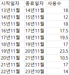 사용일수가 더 많아 보입니다.