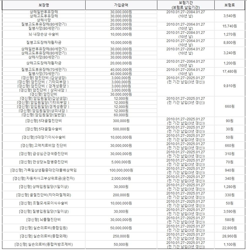현재 가입된 보험의 보장내용이 최대가 80세 만기이기도 하고, 갱신형도 많은 편인것 같아