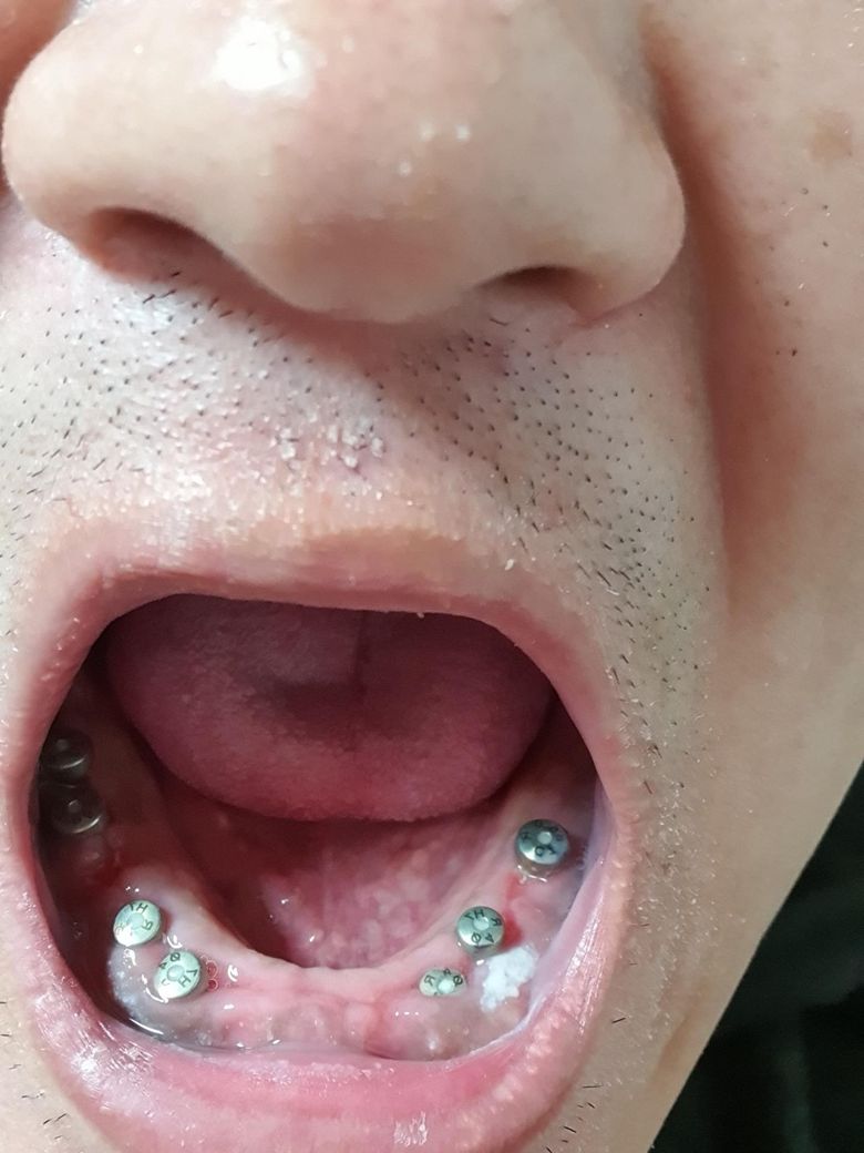 전체임플란트 식립한지 40일이 지난시점인데 하얀색조직이 보입니다 통증이나 붓기같은건없구요 염증일까요? 아니면 아무는 과정일까요
