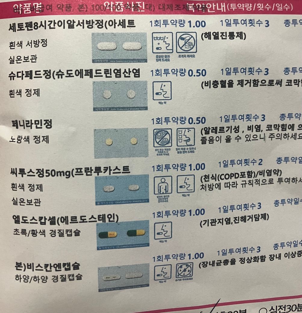 처방받으신 약 중에 보통의 경우는 그럴 가능성이 잘 없긴 하지만 슈다패드 정은 말씀하신 이장장애를 일으킬 수 있고 그로 인해서 가스가 차거나 소화가 잘 안될 수 있습니다. 또한 비스칸엔 캡슐도 유산균이긴 하지만 해당 제품에 예민하신 경우에는 장에 가스가 차게끔 할 수도 있겠습니다.