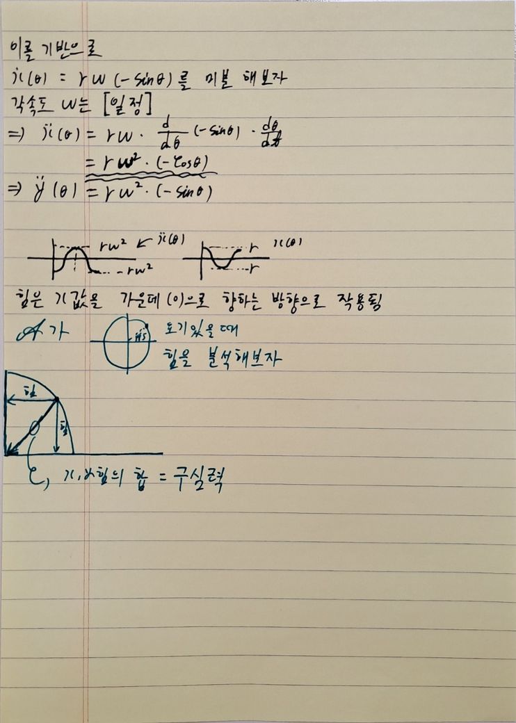 제가 원심력을 잘 구한 게 맞나요? 학교 선생님은 확답을 못 해주시네요,,