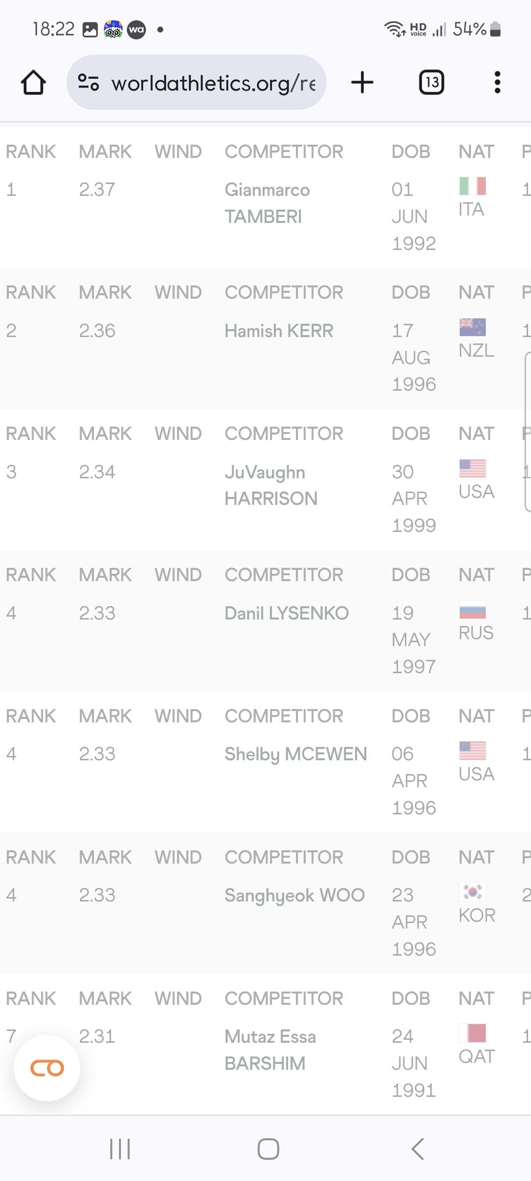 한국 육상의 높이뛰기 우상혁 선수의 현재 상태를 봐서는 동메달 정도는 노릴수 있지 않을까 생각하고 있습니다.