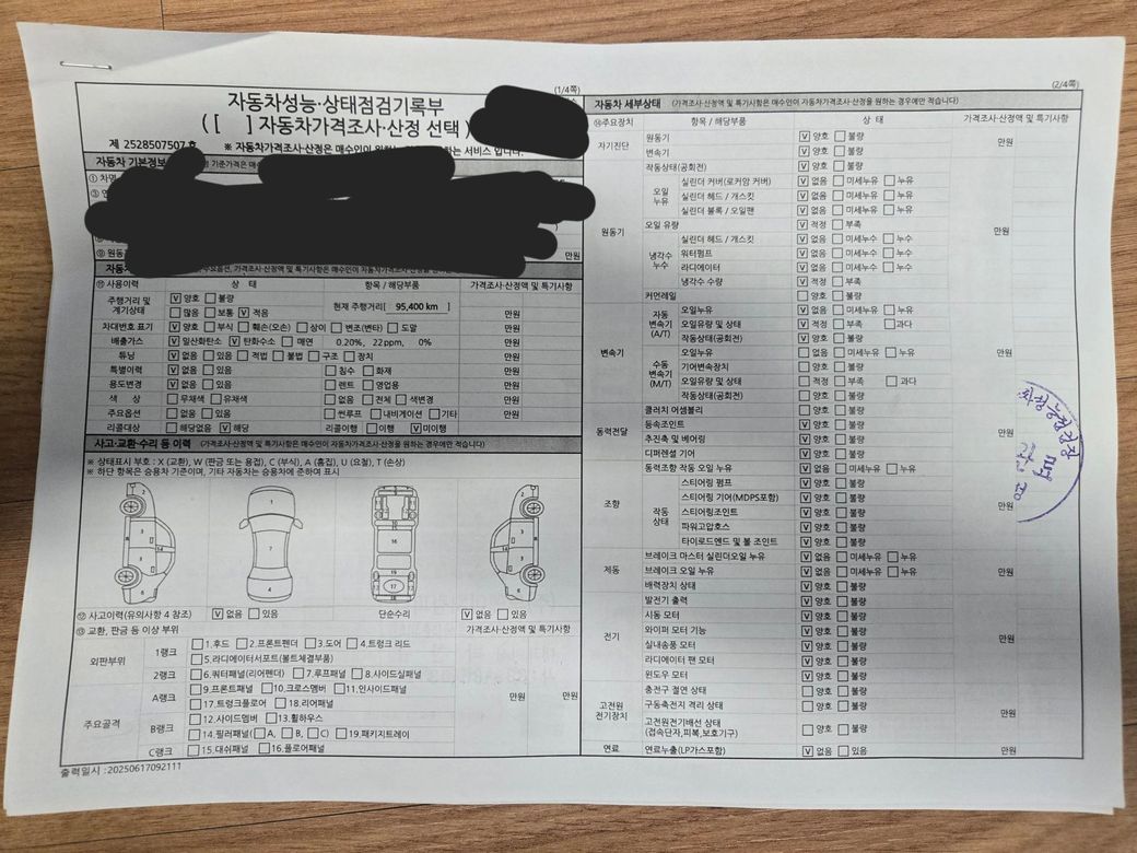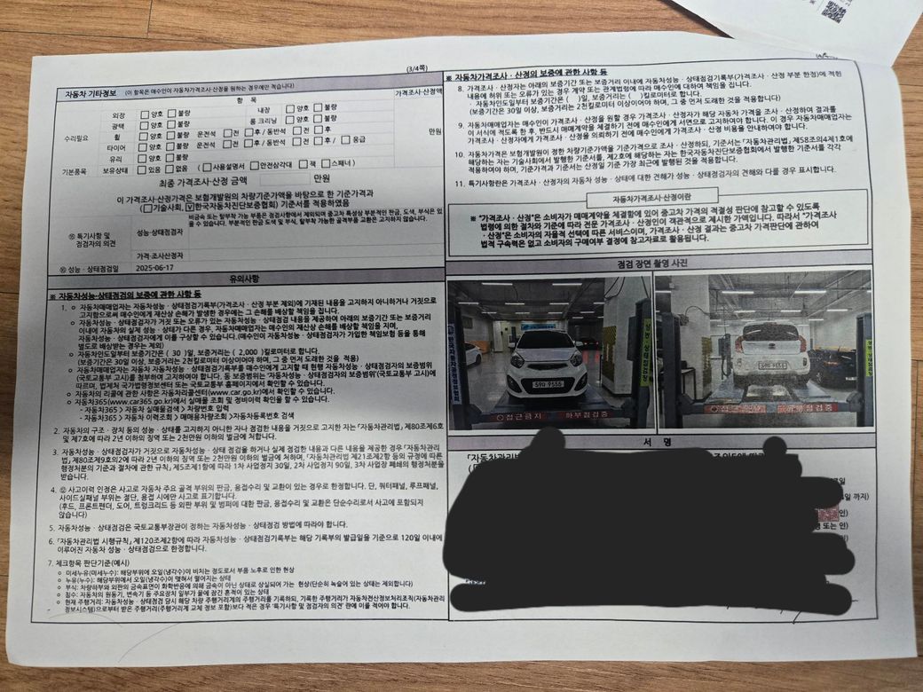 하체 부식으로 인하여 해당부분 수리 불가 판정을 받아서 환불요청을 드렸으나, 해당 차량 판매자 입장은 단순변심으로 생각합니다. 차량 성능지 상에 정상으로 확인되