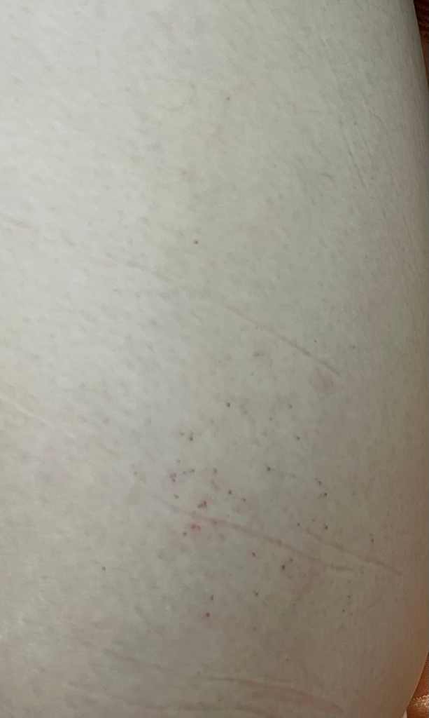 허벅지 옆면에 작은 피딱지 같은 게 있는데 이게 뭔가요?