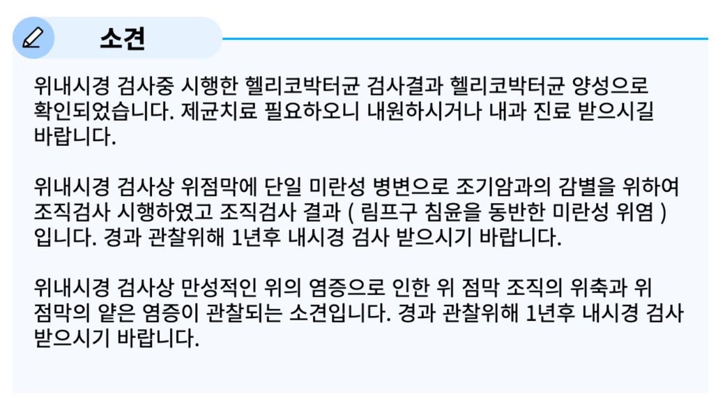 병원에서 위내시경 검사후 기록이 될때 위염의 경우에 어떻게 기록이되나요..