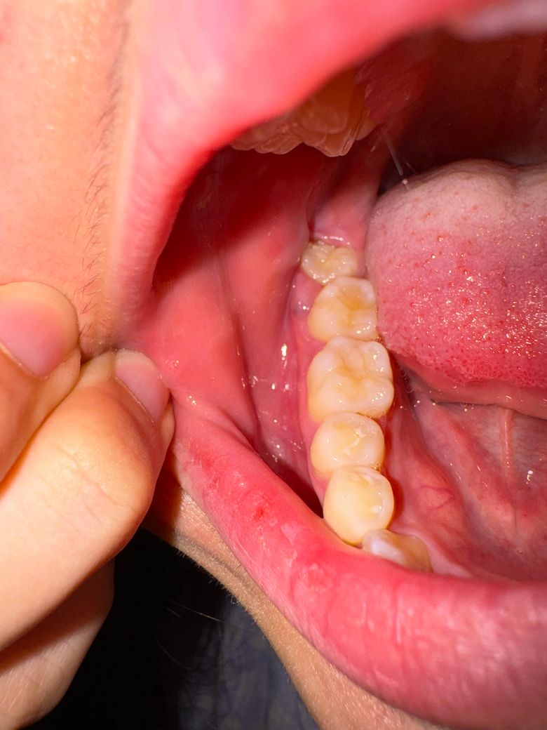 잇몸에 염증이 생긴 것으로 보이며, 사랑니로 인해 잇몸에 염증이 유발되었을 가능성이 높습니다. 보다 정확한 상태 확인을 위해 치과 진료를 권하며, 불편감을 유발하는 사랑니는 우선적으로 발치를 권합니다.