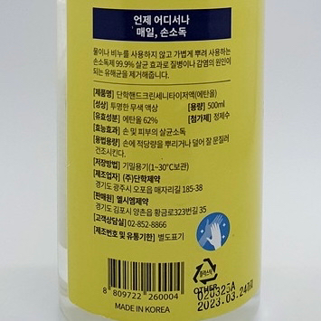 집에 분사형 액체 손소독제(사진 참고)가 있길래