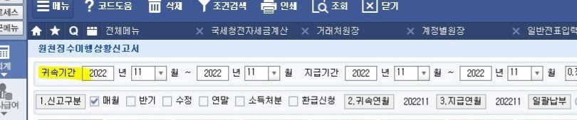 대한 원천세 신고 납부시 귀속월이 당해월이고, 지급월이 당해월인 경우에