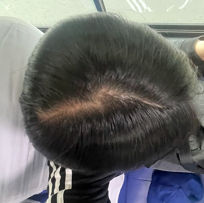 첫번째 사진이 작년 2월경이고 두번째가 오늘 찍은사진입니다.. 정수리 탈모가 심한 편인가요?